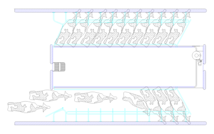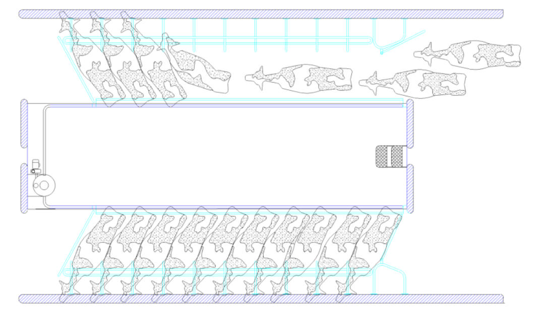Le Sale di mungitura Spina di Pesce 70° è un sistema particolarmente adatto per la trasformazione di vecchie sale di mungitura spina di pesce 30° in impianti più grandi. Nelle nuove costruzioni si possono ridurre le dimensioni dei locali adibiti alla sala, economizzando sia nel tempo per la pulizia post-mungitura sia nei costi che prevedono le grandi strutture. Particolarmente interessante in questa tipologia è l’ampiezza del corridoio nel quale gli animali si spostano, che assume dimensioni notevoli tanto da rendere superflua l’adozione di costosi frontali mobili.