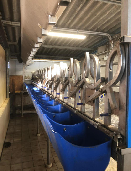 SALA MUNGITURA : Spina Pesce 70° 10+10 in acciao inox Lavaggio automatico con colpi d’aria Impianto di lavaggio in Backflush dei gruppi mungitori Pompe del vuoto ad anello di liquido Serbatoio compensatore del vuoto da 500lt. in acciaio inox Inverter su pompe del vuoto Misurazione elettronica AfiFlow Riconoscimento automatico Gestione computerizzata della mandria
